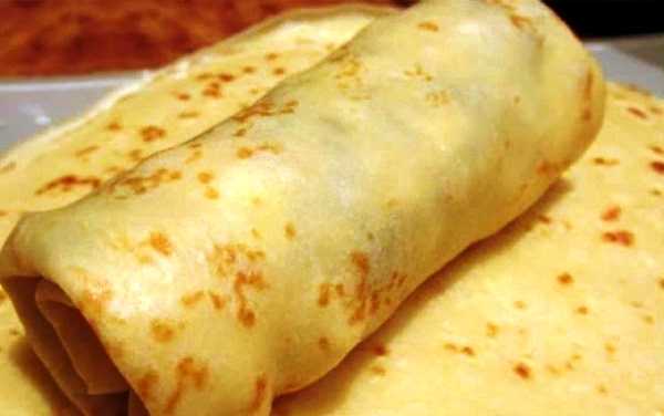 - Сильно разогреть сковороду, смазать ее один раз растительным маслом. Налить в сковороду половник теста, поворачивая в разные стороны, чтобы оно равномерно распределилось по дну. Как только края блинчика зарумянятся, перевернуть на другую сторону и печь еще 1-2 минуты. Приготовить таким же образом блинчики из оставшегося теста.