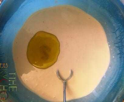 - Добавить растительное масло, перемешать. Тесто должно быть жидким. Отставить тесто на 30 минут.