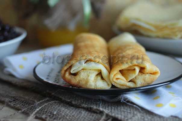 традиционные блинчики с молоком. Конечно же их возможно выпечь и согласно иному рецепту, основное, чтобы они вышли тонкими и не разрывались.