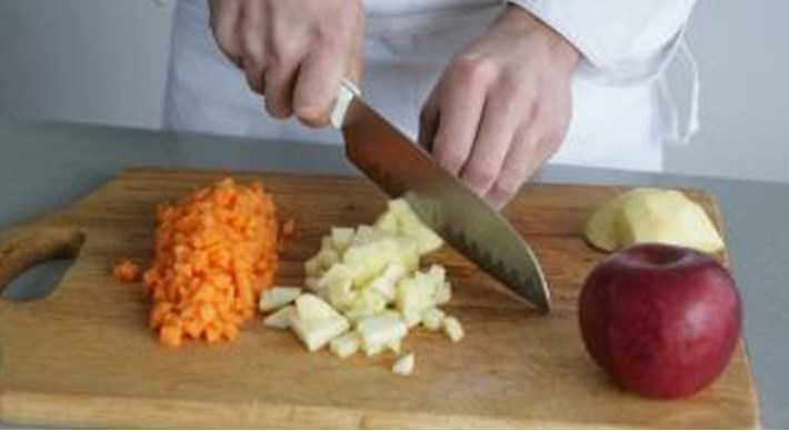 Яблоки и тыкву вычистите и размельчите кусочками где-то по одному сантиметру.