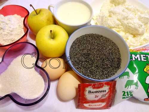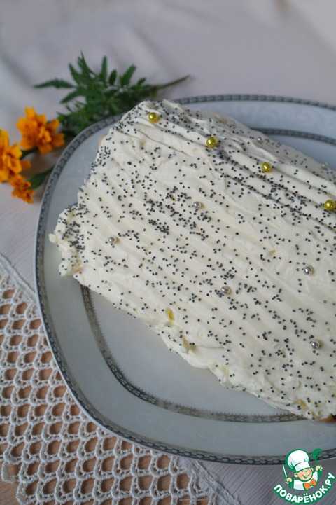 Рецепт «Творожная запеканка с блинами, маком и вишней»: