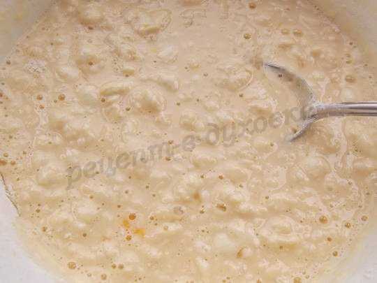 Сначала перемешиваем ложкой, пусть комки Вас не беспокоят.