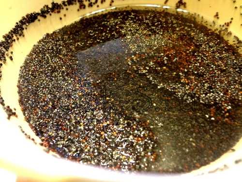 Заранее запарить мак горячей водой. Пока вы будете готовить блины и начинки для запеканки, он разбухнет, станет мягче и вкуснее.