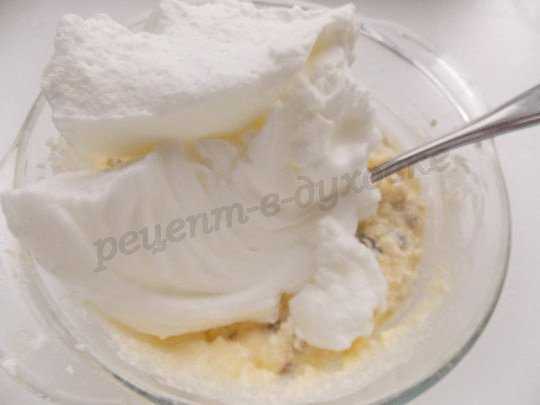 Смешиваем взбитые белки с творожной массой.