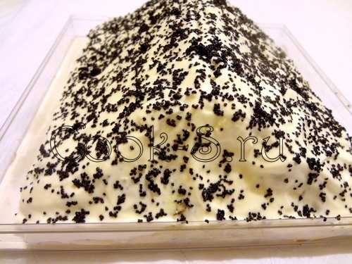 Сверху присыпать блинную запеканку маком и поставить пропитываться минимум на один-два часа в холодильник.