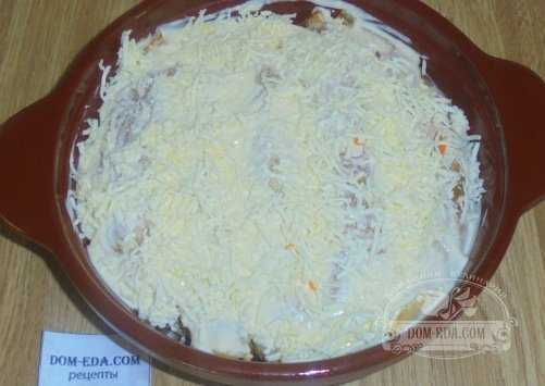 Покрыть сверху сыром и отправить в духовку.