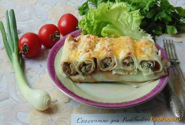 Блины можно запекать в духовке с разными начинками. Блюдо получается достаточно сытное, нежное и аппетитное. Такую запеканку в виде рулетиков из блинов можно приготовить к праздничному столу или для семейного ужина.
