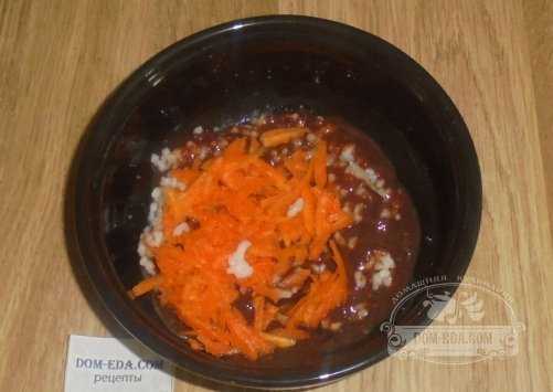 Готовую тертую морковь высыпьте в миску и размешайте до однородного состояния.