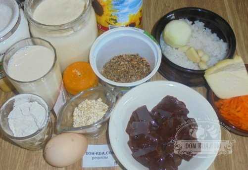 Основа запеканки состоит из овсяных блинов, которые готовятся в первую очередь. Для начинки используется говяжья печень, можно добавить и свиную. Промойте субпродукт под водой, и нарежьте кусочками среднего размера – слейте остатки жидкости. Морковь почистите и измельчите на крупной терке. Удалите с репчатого лука и чеснока шелуху – сполосните. В подсоленной воде отварите сырой рис до мягкого состояния, можно добавлять другую крупу или картофель. Затем поместите в ковш с отверстиями и промойте под холодной водой. В керамическую форму для запекания налейте горячую воду, чтобы она хорошо прогрелась.