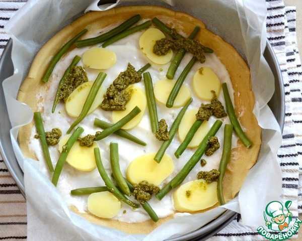 Смешать сметану, яйца, рубленный зеленый лук.