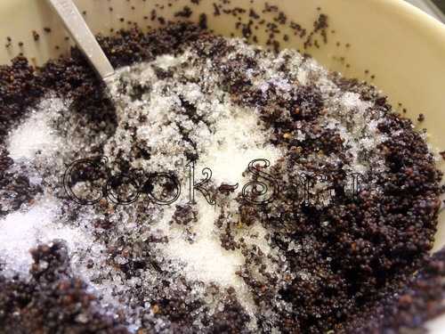 С запаренного мака слить воду, добавить сахар, перемешать.