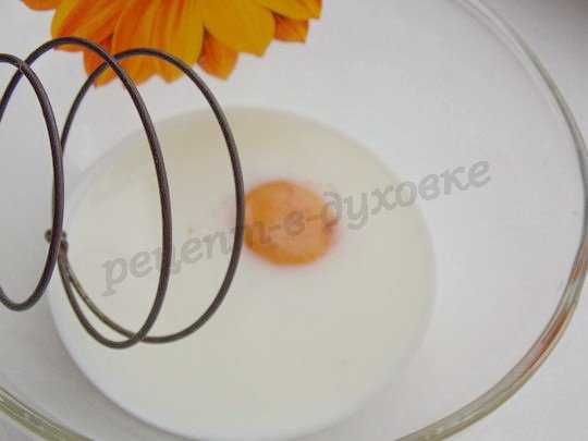Готовим заливку, взбивая желток с молоком и сахаром.