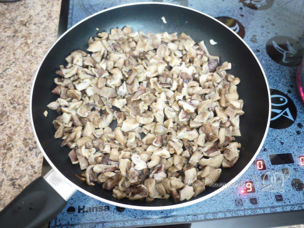 Жарим грибы до тех пор, пока не испарится вся влага (около 10-15 мин).