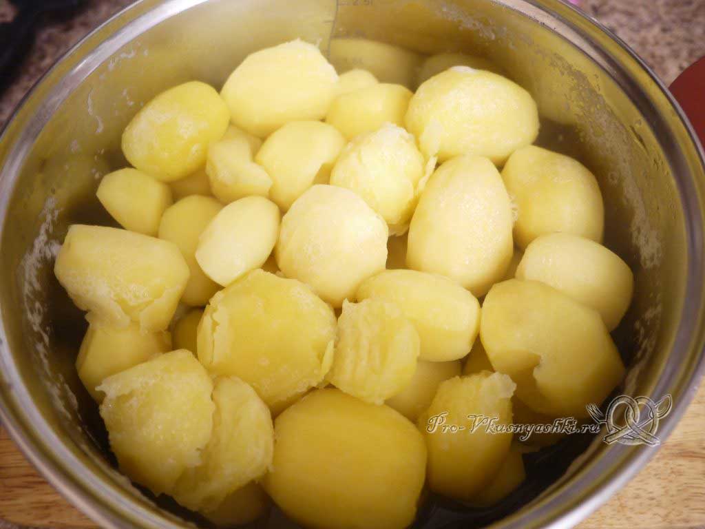 На плиту ставим кастрюлю с подсоленной водой и картофелем, варим до мягкости последнего (20-25 мин в зависимости от сорта).