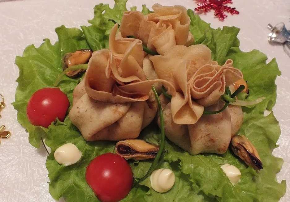 Главной особенностью формирования деликатеса служит то, что начинка кладется в остывшие блины. Помимо этого учитывается его плотность и приветствуется отсутствие дырочек. Так можно удержать даже жидковатую массу внутри.