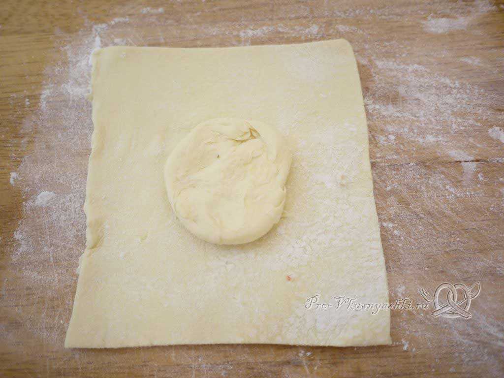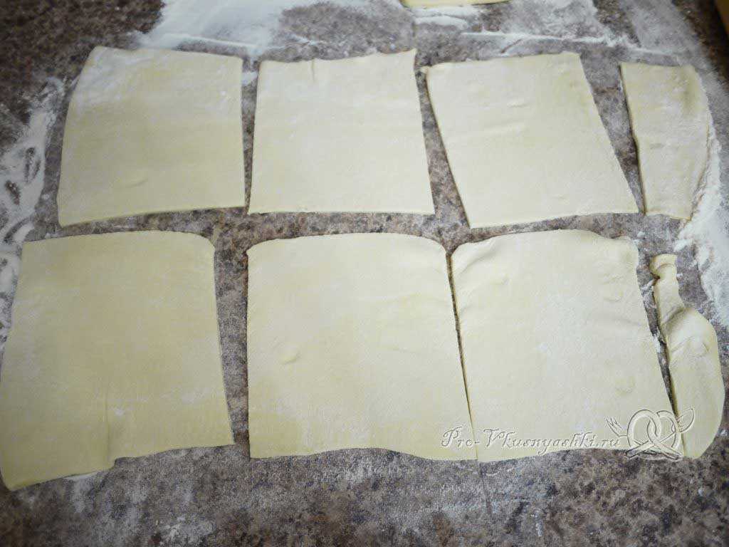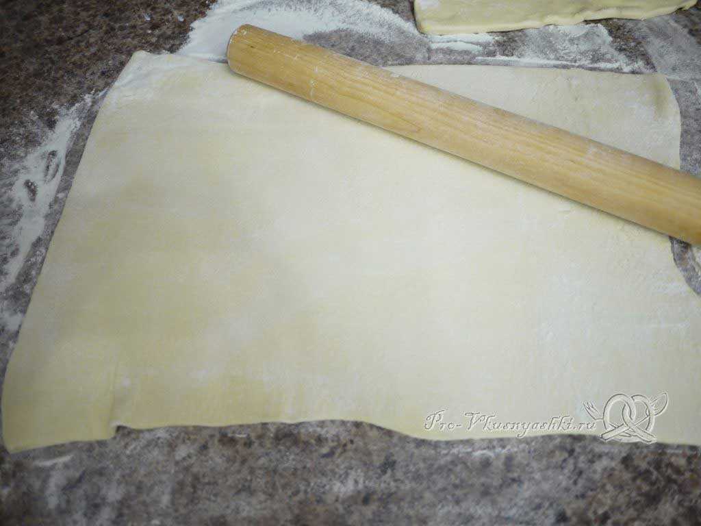 Слоеное тесто раскатываем толщиной около 3 мм.