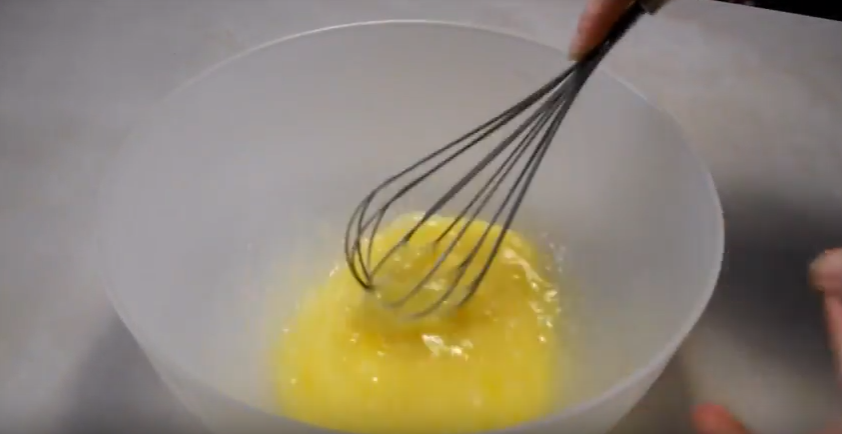 в другой миске хорошенько размешиваем яйца с сахаром и солью