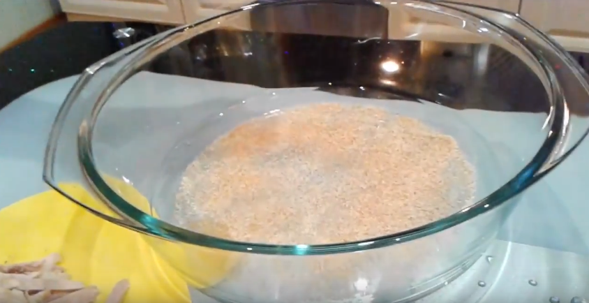 2. Форму в которой будет выпекаться пирог посыпаем панировочными сухарями.