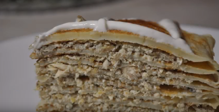 Кстати, а вы пробовали приготовить блинный пирог с курицей и жареными грибочками, который напомнит вам лазанью с соусом «Бешамель»? Нет! Очень много потеряли! Он невероятно сочный и нежный. Могу поспорить, что этот шедевр очень скоро станет вашим фирменным блюдом!