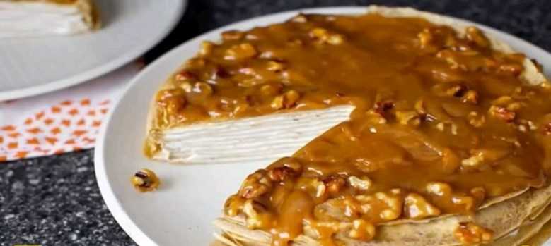 Блинный торт с карамельным муссом и фруктами