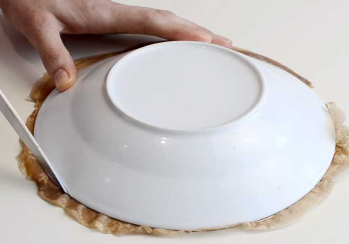 По желанию, чтобы были ровные края, обрежьте их под тарелку.