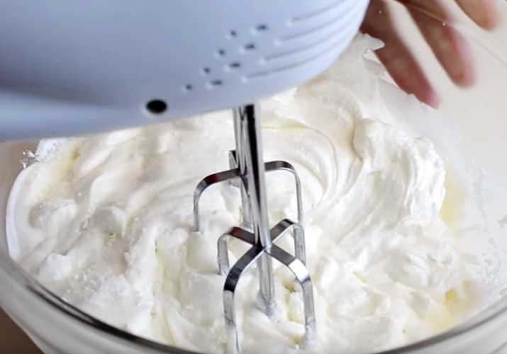 Хорошо взбиваем блендером, чтобы получилась воздушная и пышная масса.