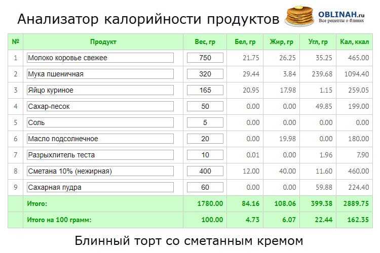Калории и БЖУ на 100 г