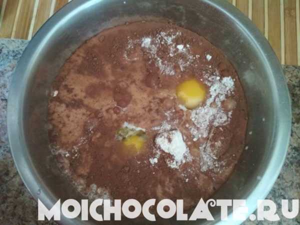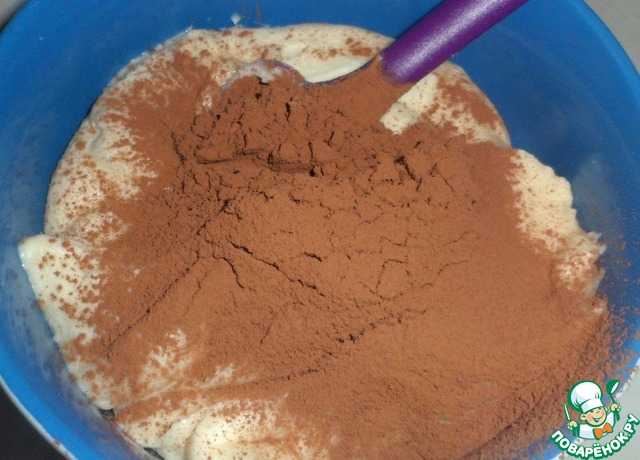 - добавить порошок какао в тесто;