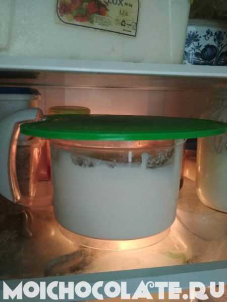 - Прячем крем в прохладу — подойдет верхняя полка холодильника. Убрать нужно для остывания примерно на 20 минут. Он должен немного загустеть.