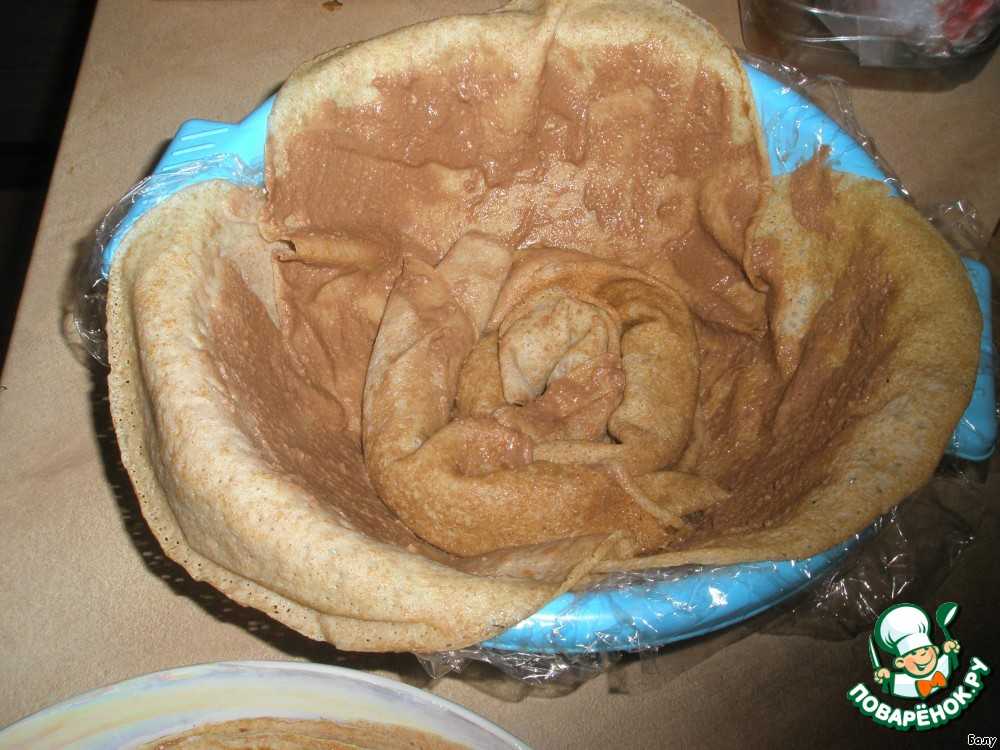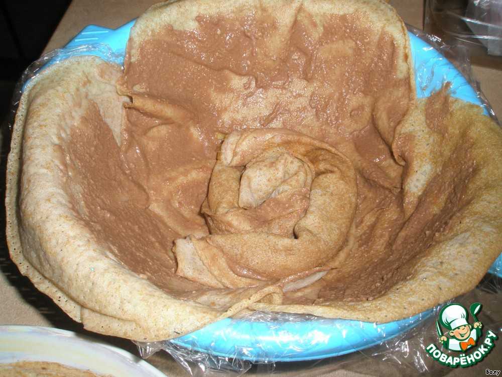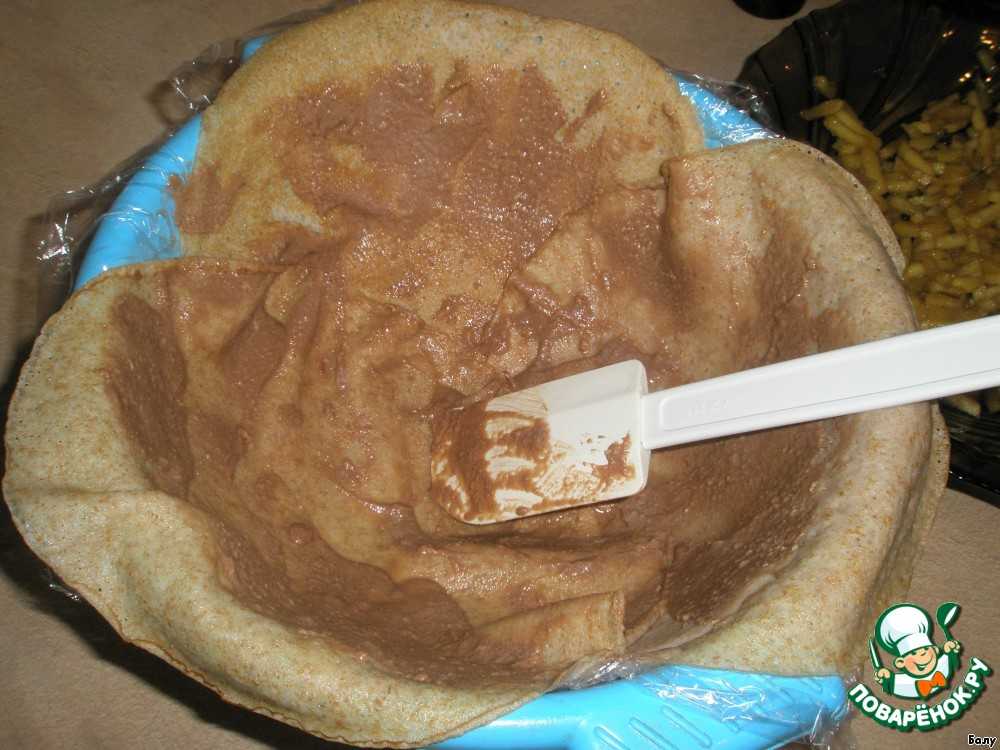 - Затем из полученного теста испечь 18-20 блинов диаметром 19 см.