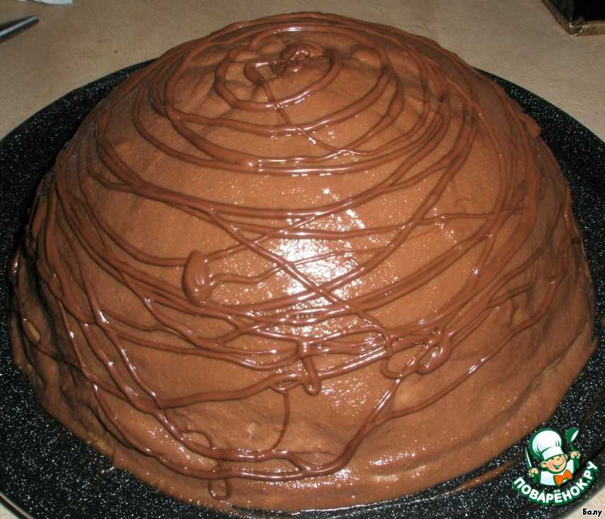 Полученный торт украсим растопленным шоколадом, вот тут, за счет того что крем заливки более темный, так напрашивался белый шоколад, но под рукой не было.