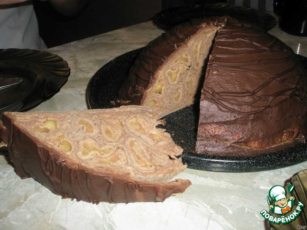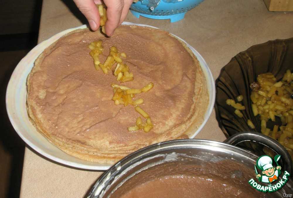 Рецепт «Блинный торт с шоколадным кремом и яблоками»: