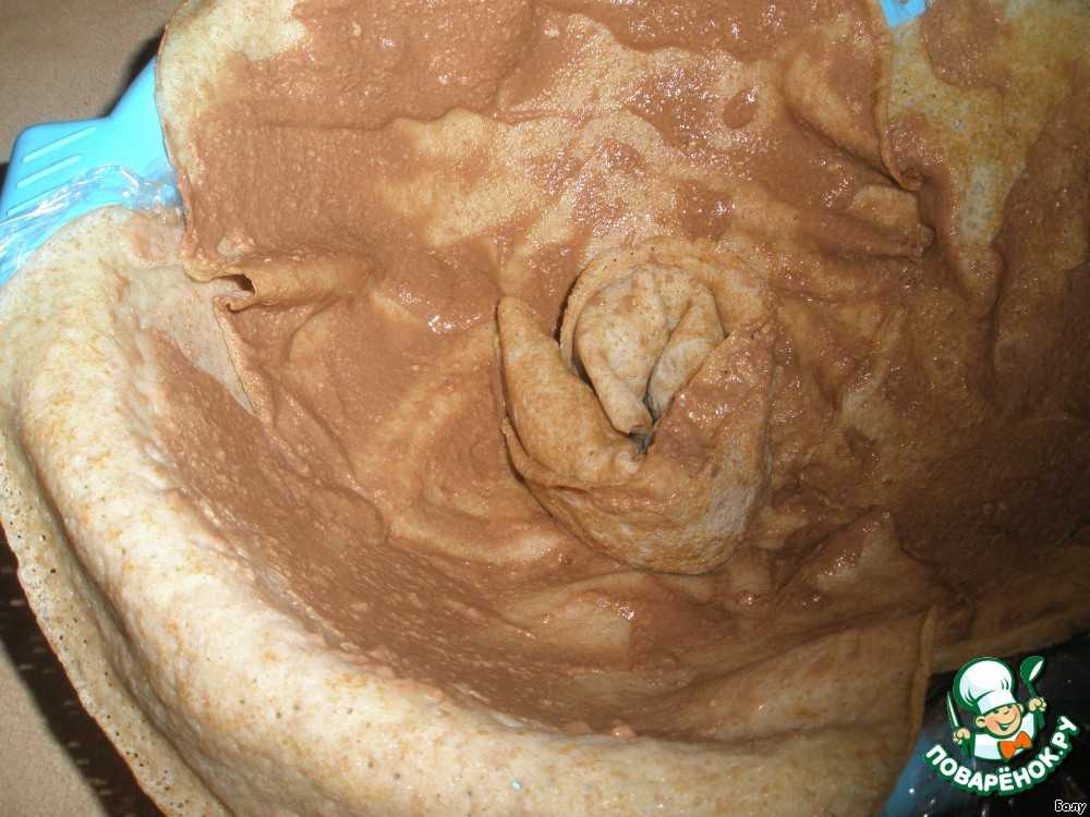 Блины для этой выпечки получаются с мегашоколадным вкусом благодаря тому, что в состав теста входит не только какао-порошок, но и черный шоколад. Пропорции ингредиентов будут следующими: