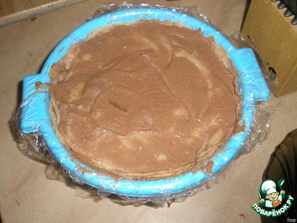 - После того как торт собран ему нужно постоять, чтобы пропитаться начинкой.