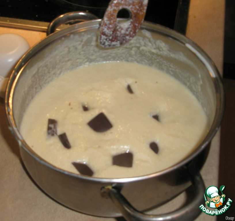 - Для приготовления блинчиков необходимо, темный шоколад растопить, присоединить остальные ингредиенты, замесить тесто. Блины испечь на разогретой сковороде, промазанной маслом, затем остудить. Для приготовления крема необходимо растопить белый шоколад.