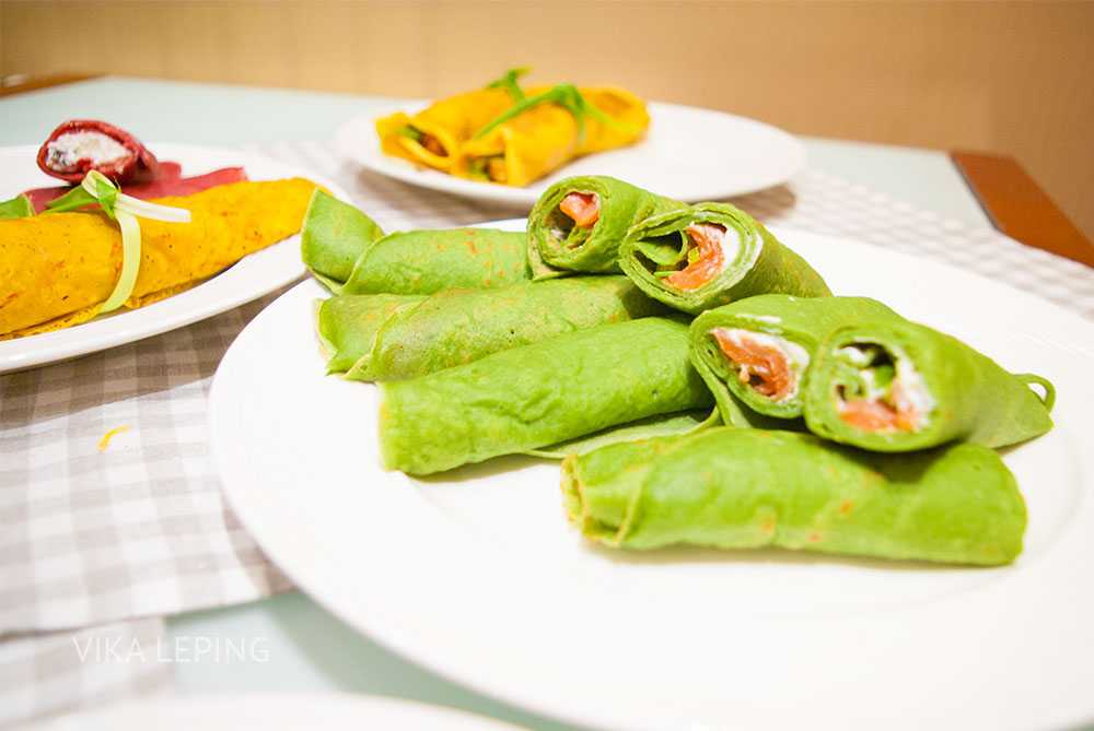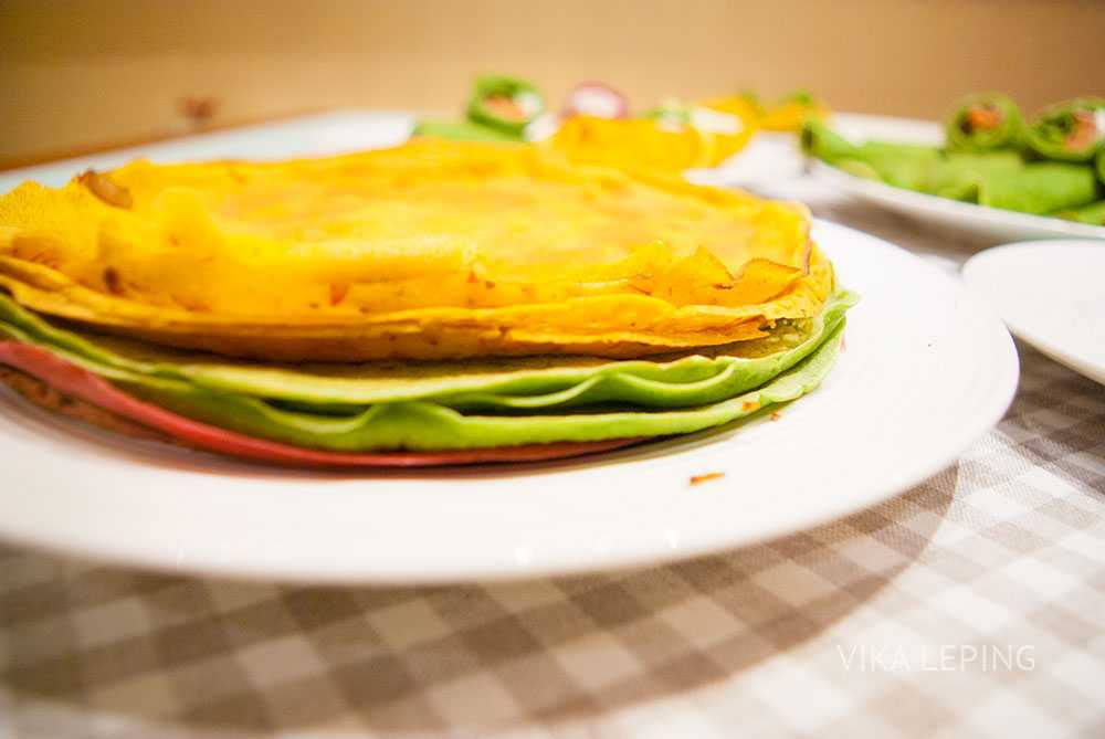 цветные блины, разноцветные блинчики, зеленые блины, блины из шпината Десерты