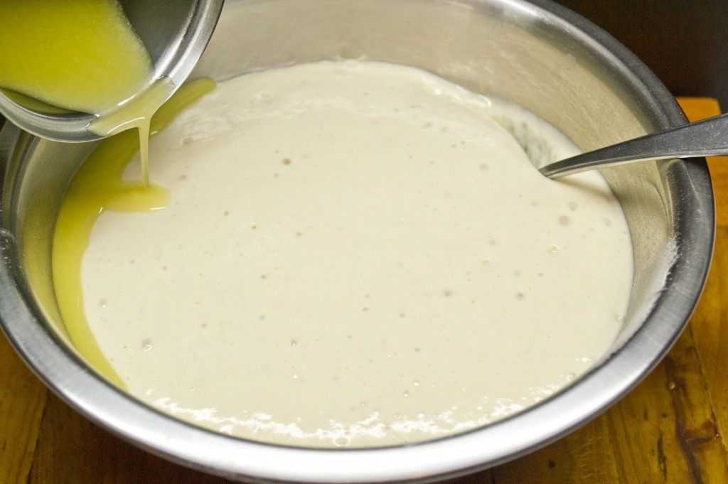 - Температура жидкости должна быть достаточно теплой, примерно 40 градусов, чтобы реакция у дрожжей началась сразу. В холодной жидкости нужно будет оставить опару на более продолжительное время.