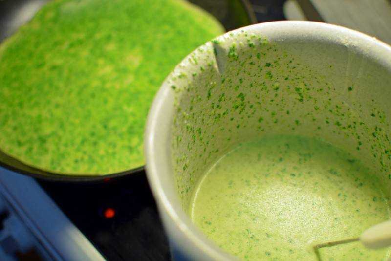 Гороховые блины отличаются от обычных блинов ярким жёлтым цветом.