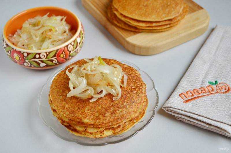 У каждой уважающей себя хозяйки есть свои излюбленные рецепты блинов – благо, эти незамысловатые изделия открывают огромный простор для фантазии. Эксперименты могут быть связаны, помимо прочего, с добавлением разнообразных «аксессуаров» непосредственно в тесто. Одним из удачных вариантов является лук.