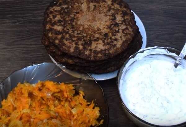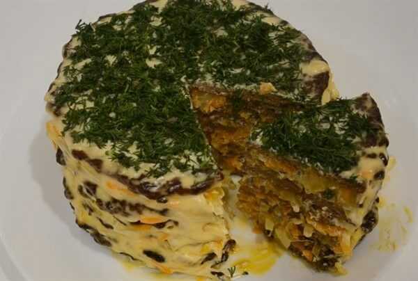 Печеночный торт из говяжьей печени с морковью и луком без молока