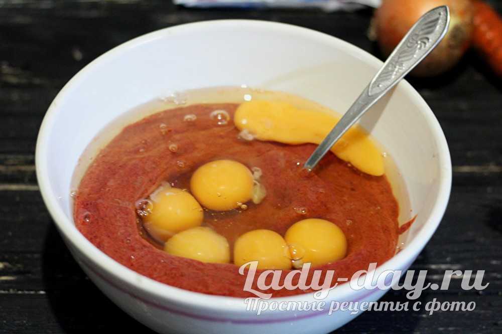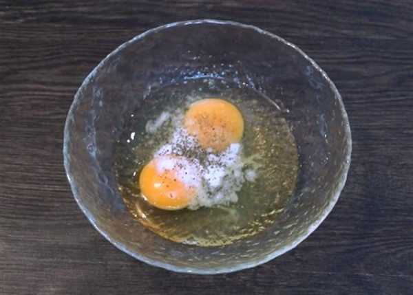 2. Яйца взбиваем с солью и перцем. Полученную массу вливаем в печеночный фарш.