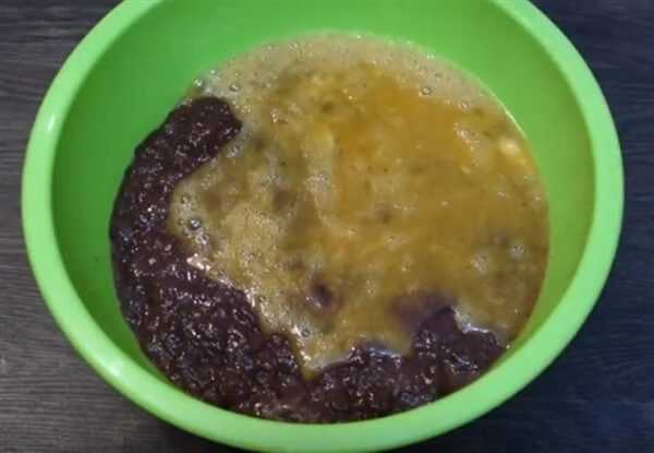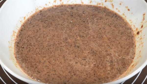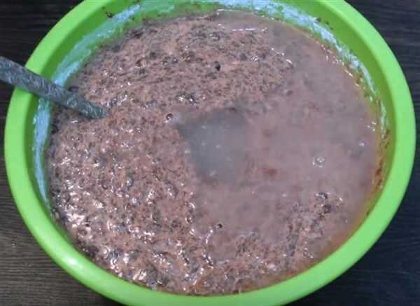 Чтобы консистенция стала более жидкой, вливаем 100 мл воды, перемешиваем.