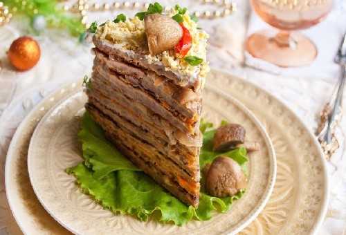 Сочетание печени и грибов всегда считалось очень удачным, поэтому приготовление тортика из говяжьей печени с грибной начинкой – это очень хороший вариант для праздничного стола. Не жалейте сил и времени и результат порадует не только вас, но и ваших близких!