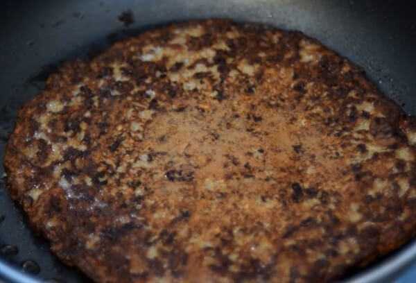 Как только одна сторона подрумянится, переворачиваем его на другую сторону. Готовим на среднем огне.
