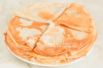 - Складываем блинчики друг на друга, не забывая смазывать каждый сливочным маслом.
