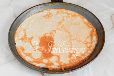 Все компоненты смешивают, пока не получится однородная масса. Оставляют тесто на четверть часа в теплом месте. На тефлоновую сковородку (без добавления масла) выливают небольшое количество теста (1 ст. л). Жарят блинчики до золотистого цвета с двух сторон.