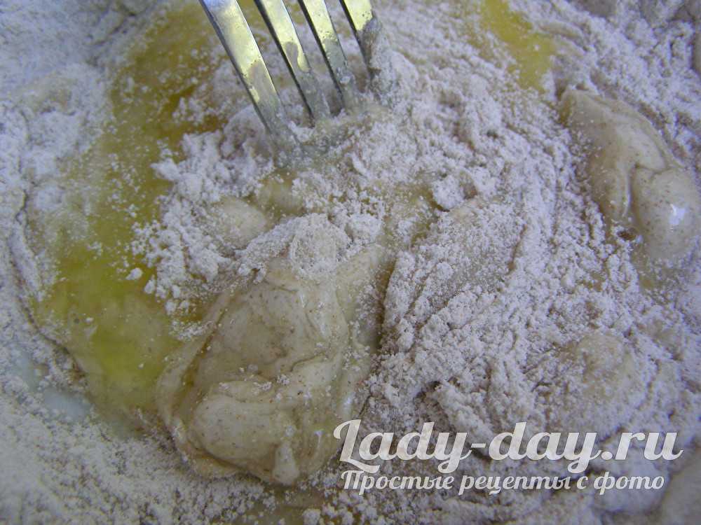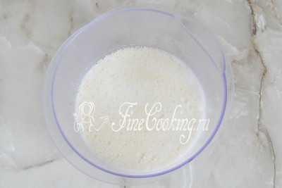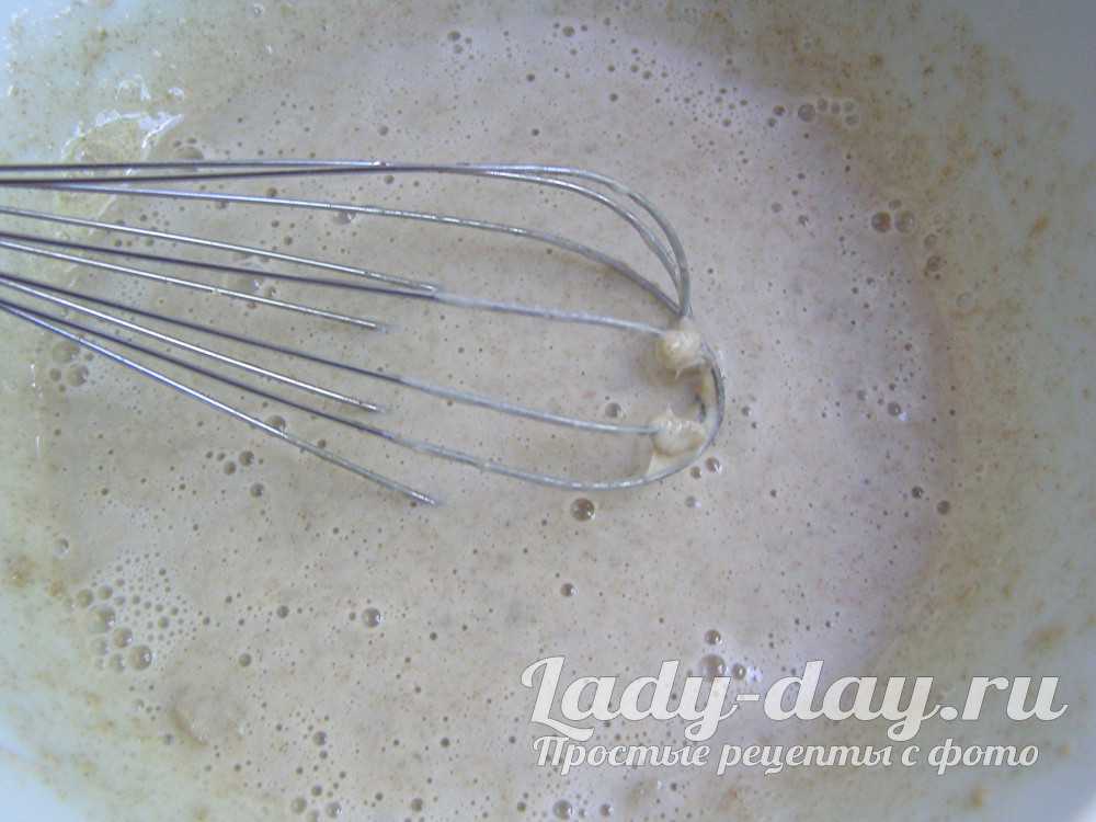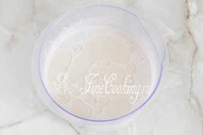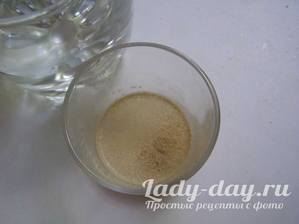 - Дрожжи соединить с сахаром и ввести смесь в общую массу.