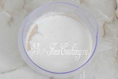 - Влить воду, чтобы получилась консистенция жидкой сметаны.