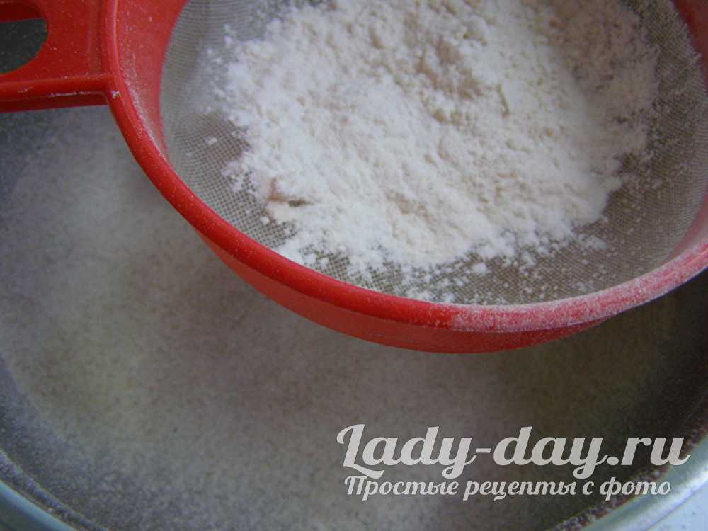 - Засыпать в массу муку тонкой струйкой, не прекращая помешивания.