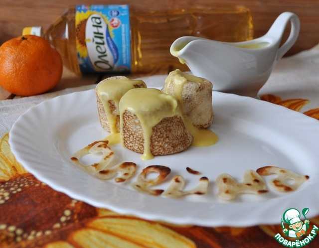 Рецепт «Блины с мандариново-миндальным соусом»: